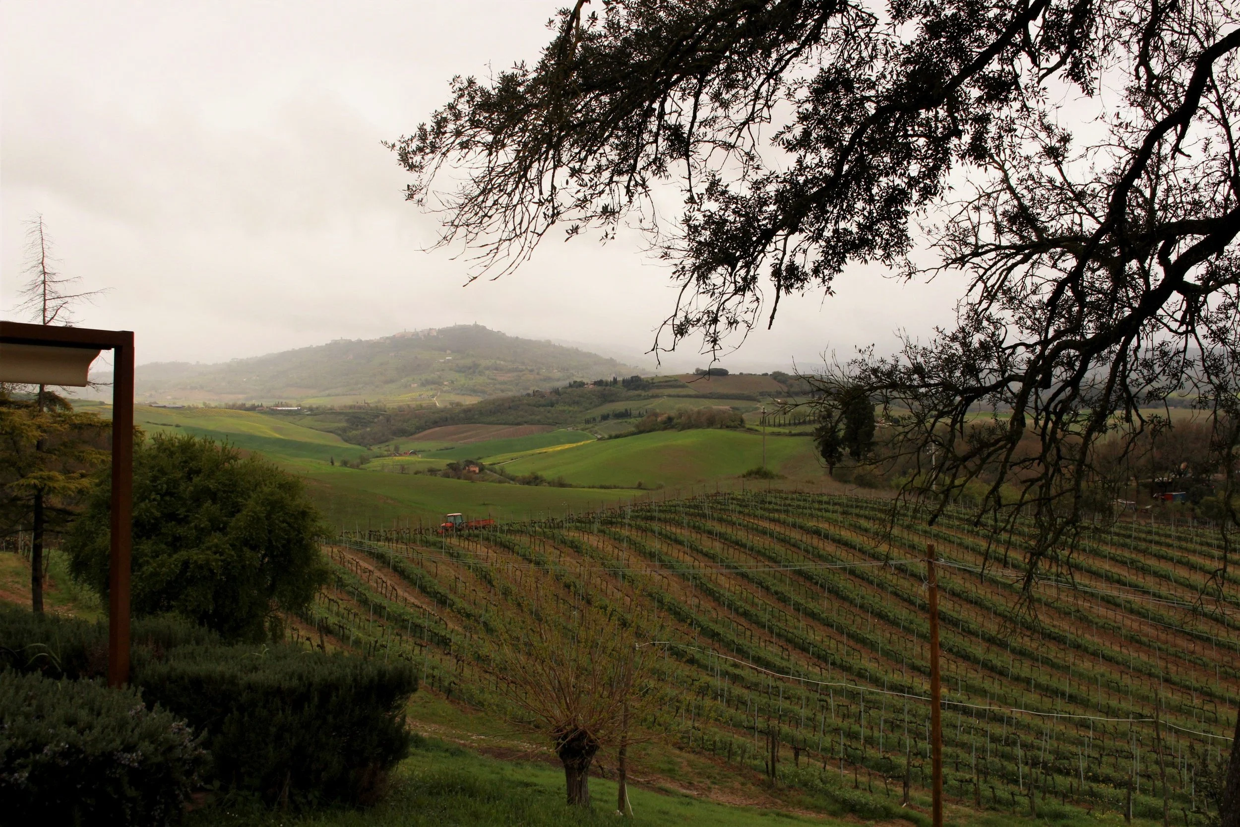 Vineyard with Montalcino in background