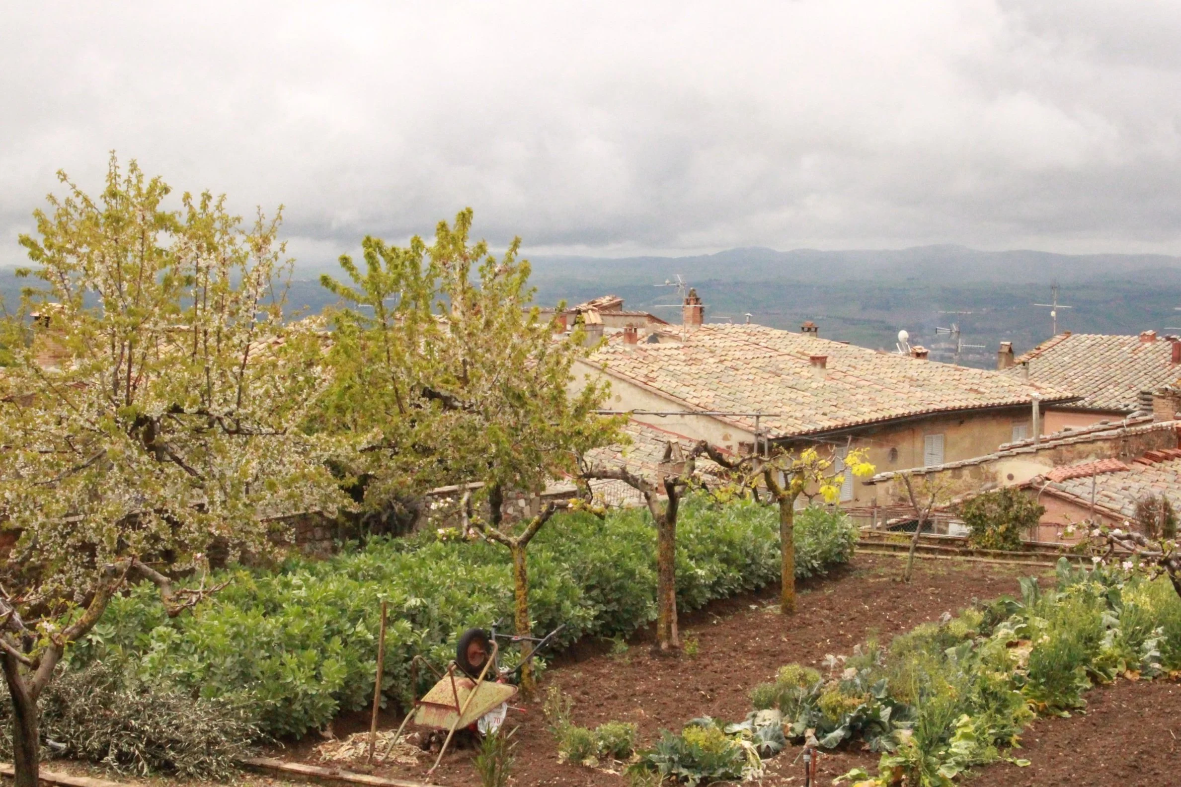 I had the pleasure of spending a day in and around Montalcino at the invitation of my (American) friends from virtual Italian class, Kristin and her husband. On a gray, damp day, we toured the cellars of Castello Tricherci vineyard, and then had a tasting and lunch. I popped into the village of Montalcino proper on my way back to Roccastrada.