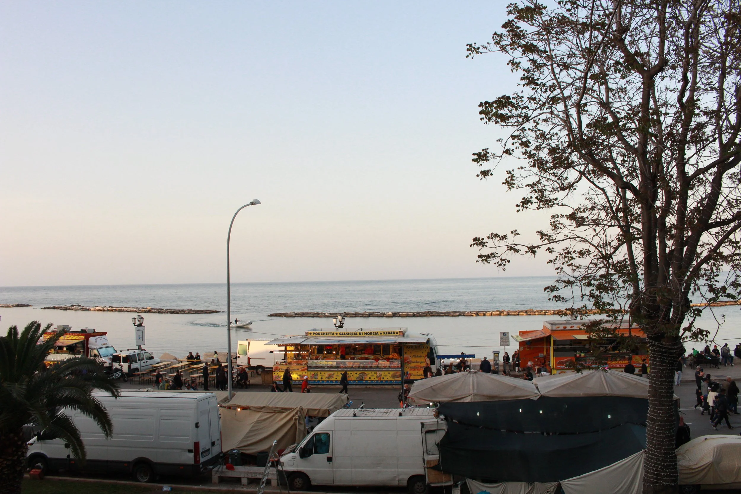 This was the seaside carnival in honor of San Nicola; the street was closed and vendors were selling and people were drinking and hollering.