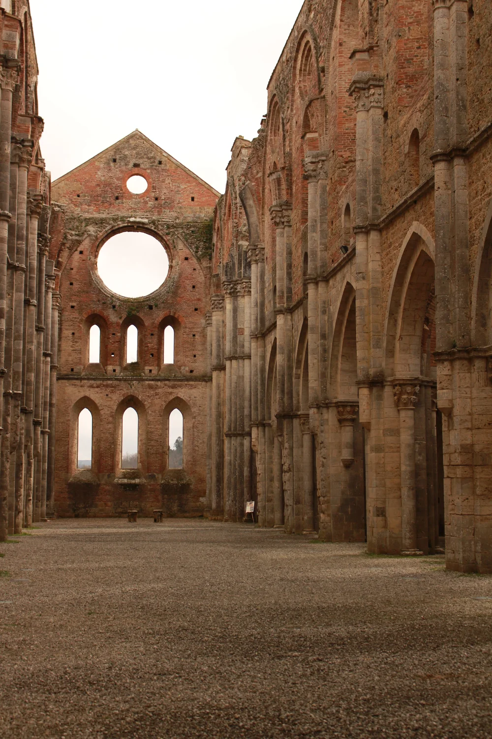 Ezio took me to San Galgano, about 40 minutes drive from Roccastrada in the town of Chiusidino, in his 16 year old black PT Cruiser, which he explained has a Chevy body but a German engine. First we had to stop at the cafe in town for a coffee. He got an orzo which is a roasted barley hot drink, no caffeine. He said he has to sometimes because he has too many real coffees every day. He told the cashier that he was taking the americana to San Galgano. It was nice to have a local guide to soften my tourist-ness. When we walked into the cafe, there were two blonde boys with their tall and equally blonde dad, eating ice cream novelties at a table at 10:30am. Ezio leaned over to me and stated a fact: “Deutsch.”