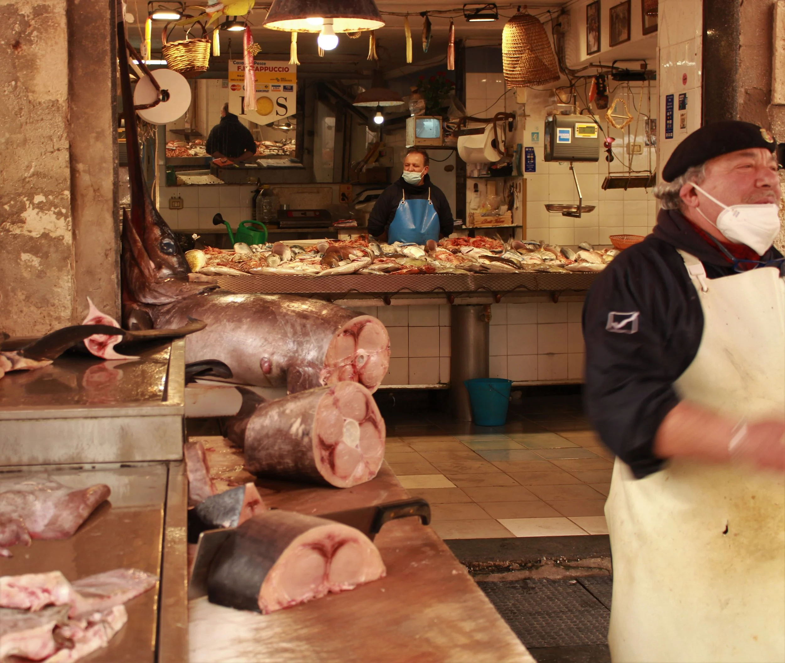 I continue to eat often and well. The caponata was delicious and the service friendly at Taverna Guidecca my first night. The gigantic 2 euro arancino con ragu at L’Antica Guidecca was transcendent for lunch the next day. I ate it sitting across from the place, on a street so narrow that when cars drove by I had to turn sideways and put my feet up on the bench with me to get out of the way. My second dinner was mostly Campari. It started with an aperitivo at Enoteca Solaria. I told the waiter I like a dry white wine, no oak, which is a fancier way of saying Chardonnay makes me ill, and he suggested a Sicilian Catarratto which was lovely. I drank it with my bruschette of pistachio pesto topped with a sliver of pork fat. Texturally and taste-wise, the bread is so much better the further south you go.