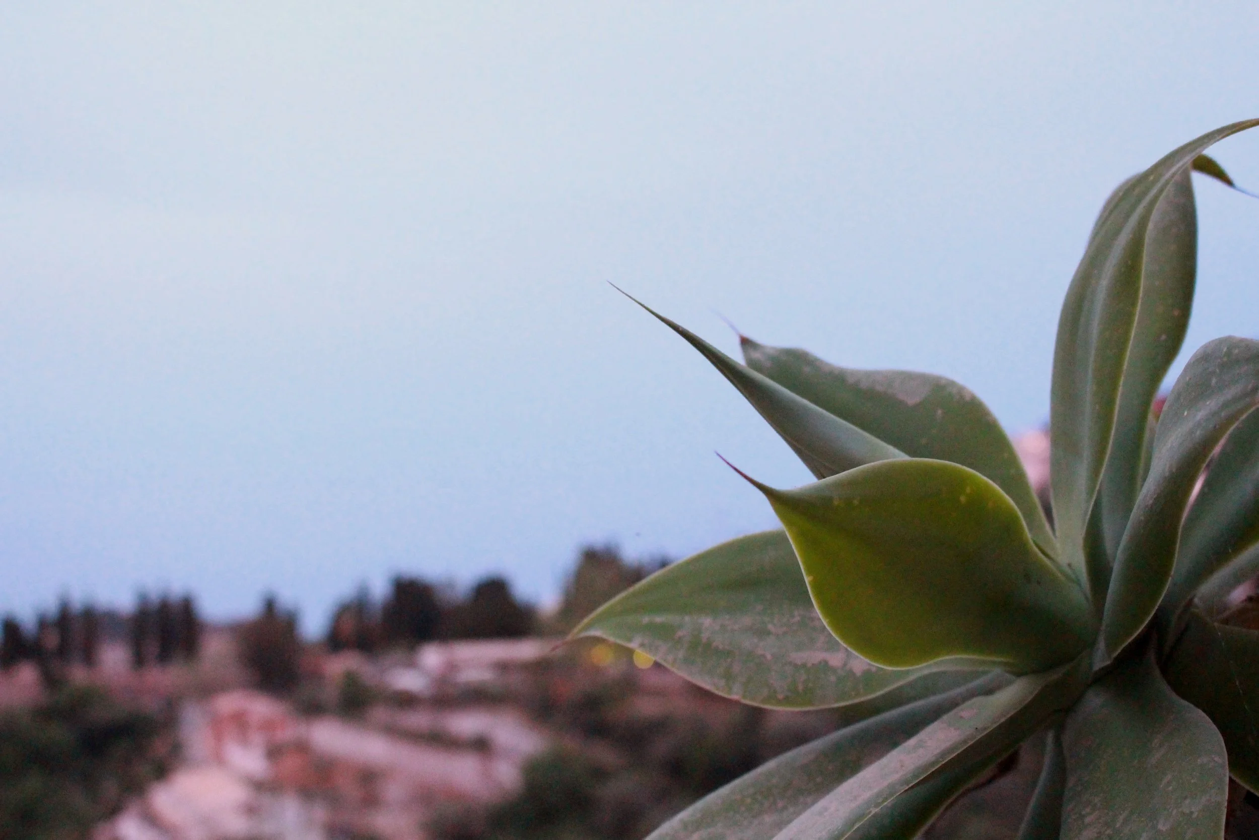 From Siracusa, I took a bus up the coast to Taormina, where I spent five nights at a sea-view rental apartment owned by my Italian teacher. Taormina is gorgeous, clinging to the cliffs with lemon and orange trees in front yards and on street corners. It is definitely a resort town, though, so the main drag of shops and restaurants is a little flashy for my taste. Thankfully where I was staying was a 10 minute walk from that area so it felt calmer; I was able to stock up at the grocery store and make some lunches and dinners at the apartment heavy on the vegetables, a food group I’ve almost entirely replaced with cured meats on this trip. :/