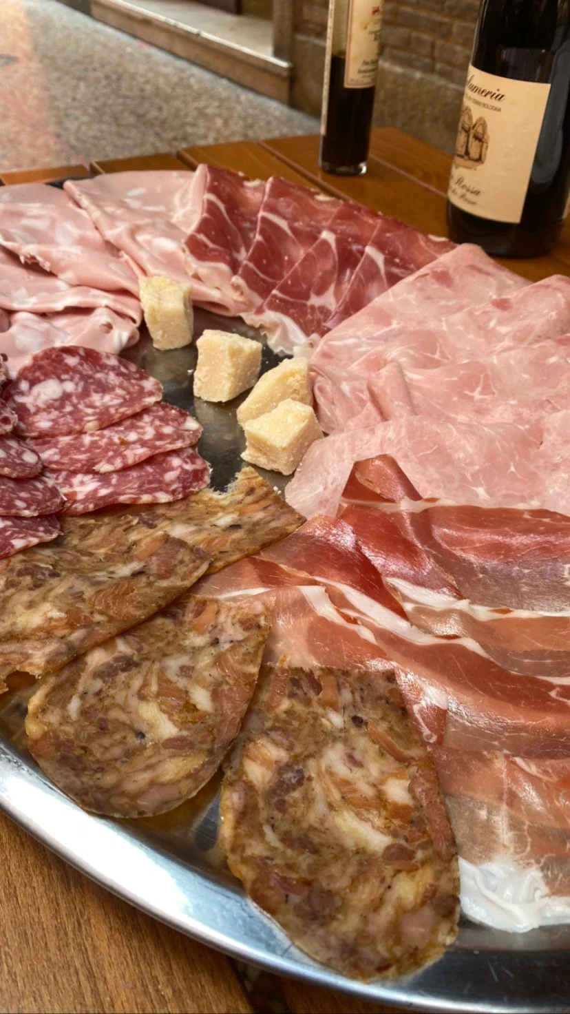 Bologna is known as La Grassa - “the fat one,” and its region, Emilia-Romagna, is where all the stuff you think of when you think of Italian food comes from: Parmigiano-Reggiano cheese, balsamic vinegar, prosciutto di Parma, tortellini, ‘bolognese’ sauce which here is called simply ragu, Lambrusco, the fizzy red wine which has a bad rap in the States because as my tour guide said “we only exported the bad stuff and kept the good for us here.” But it is so delicious to cut the fat of cured meats and there are many.